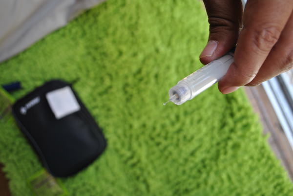 ↑そしてこれが、ペン型の注射器。これに、針をセットします。